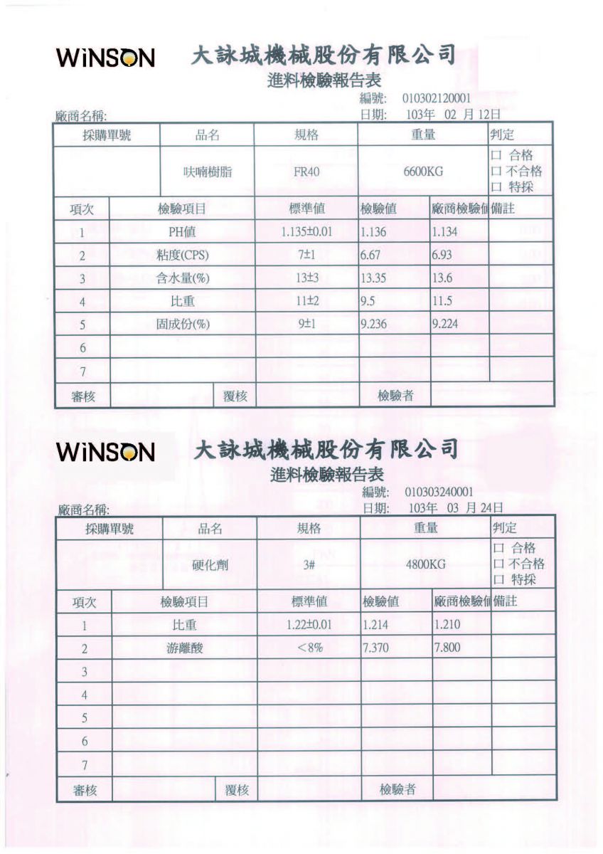 Index > SERVICES > Certifications > Quality Control Reports