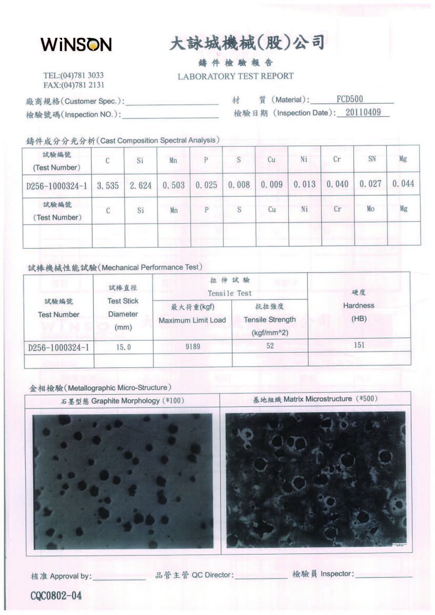 FCD500 Casting test report